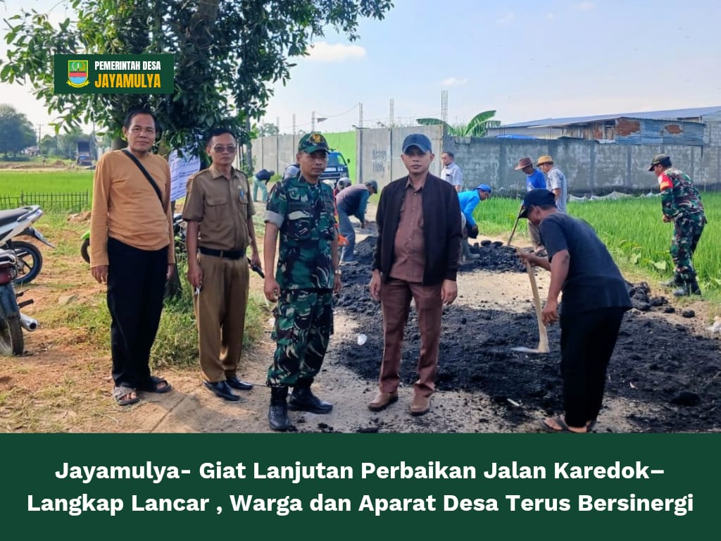 Jayamulya, Selasa, 14 April 2026 — Giat lanjutan perbaikan Jalan Karedok–Langkap Lancar, kembali dilaksanakan dengan penuh semangat kebersamaan antara warga dan aparat Desa Jayamulya. Kegiatan ini merupakan bentuk nyata kepedulian bersama dalam meningkatkan kualitas infrastruktur jalan demi kenyamanan dan keselamatan masyarakat yang melintas setiap harinya.