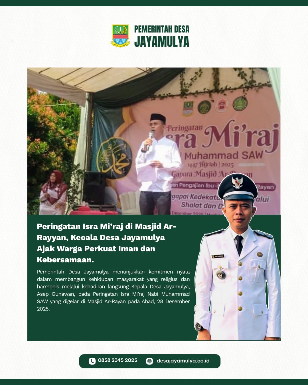 Pemerintah Desa Jayamulya kembali memperlihatkan perannya sebagai garda terdepan dalam mendukung gerakan positif masyarakat. Dalam...