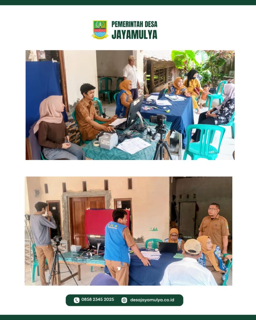 Jayamulya – Pemerintah Desa Jayamulya kembali melaksanakan kegiatan pelayanan administrasi kependudukan berupa pendataan dan perekaman Kartu Tanda Penduduk Elektronik (KTP-e6l) bagi warga desa. Kegiatan ini dipusatkan di Kadus 3, tepatnya di RT Winta RT 010/RW 003, dan diikuti oleh warga dari seluruh wilayah Kadus 1 hingga Kadus 5 yang telah terdaftar dalam data kependudukan desa.