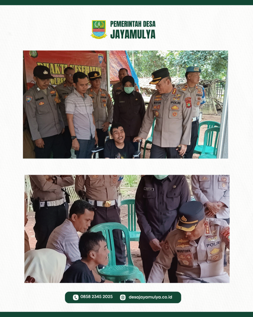 Dalam kesempatan tersebut, Kapolres Metro Bekasi KBP Mustofa bersama Kepala Desa Jayamulya Asep Gunawan secara simbolis menyerahkan bantuan kursi roda kepada warga yang membutuhkan. Bantuan ini merupakan bentuk nyata kepedulian aparat dan pemerintah desa terhadap masyarakat yang memiliki keterbatasan fisik, sekaligus menjadi bagian dari program “Bhakti Sehat” yang digagas untuk meningkatkan kualitas hidup warga.