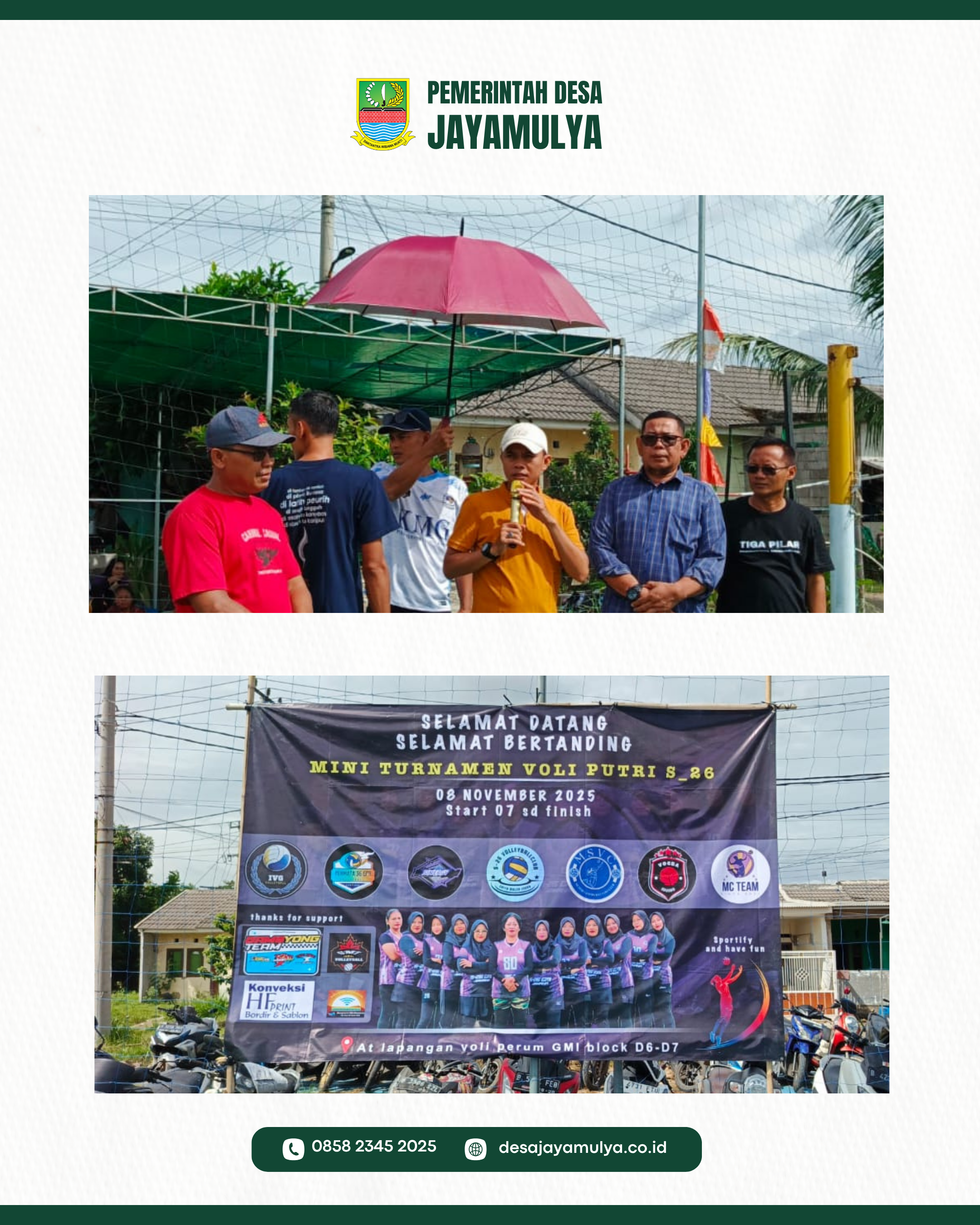 desajayamulya.co.id – Dalam rangka memperingati 4th Anniversary S-26 GMI, Pemerintah Desa Jayamulya bersama warga RW 017 menyelenggarakan Mini Turnamen Volly Putri yang berlangsung meriah dan penuh semangat kebersamaan. Kegiatan ini menjadi bukti nyata dukungan Pemerintah Desa Jayamulya terhadap pengembangan olahraga dan penguatan solidaritas masyarakat, khususnya generasi muda dan kaum perempuan.