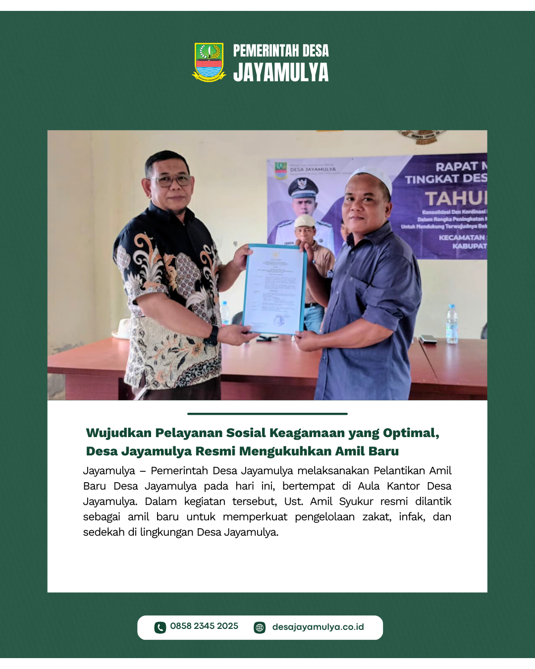 #DesaJayamulya#PemdesJayamulya##PelantikanAmil#AmilDesa#ZakatInfakSedekah #PelayananMasyarakat#KeagamaanDesa#AmilAmanah#BeritaDesa#AulaKantorDesa# TokohAgama#SyiarIslam#ZakatBerkah#DesaReligius#JayamulyaMaju#SinergiDesa #PelayananMasyarakat#AmilBaru#DesaBerdaya#DesaMaju